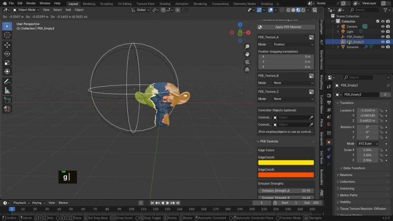 此插件允许应用带有程序化溶解效果的强大材质,轻松加载纹理,并直接从侧边栏控制映射和着色器设置。