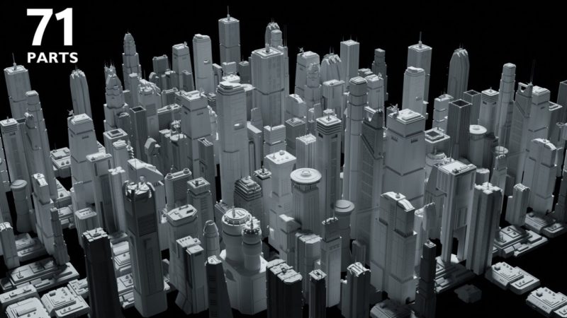 本产品整合了所有科幻3D建筑和摩天大楼:科幻摩天大楼套件1 – 5 + 科幻住宅建筑套件