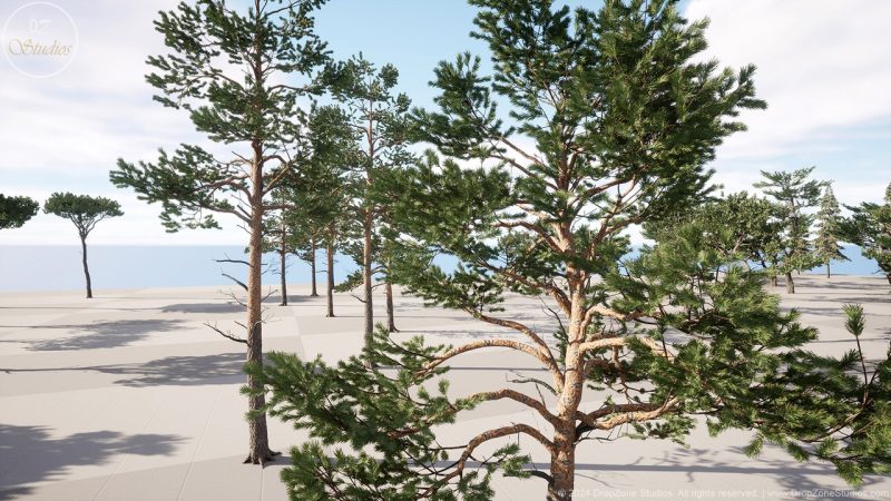 该产品默认使用UE5的新特性Nanite,所以树状网格不包含其他LOD。