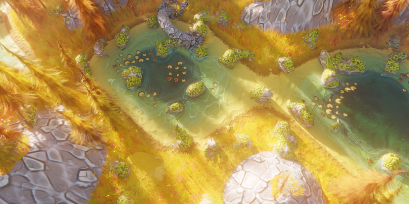 - 程序化植被和道具:松树、草丛、岩石构造和睡莲,根据你的规则生长。
