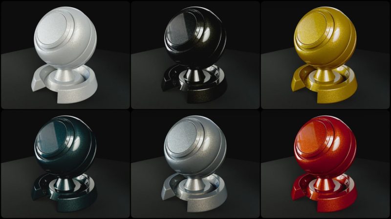 一套包含6个汽车漆面着色器预设的合集,专为物理渲染效果的制作流程而设计。