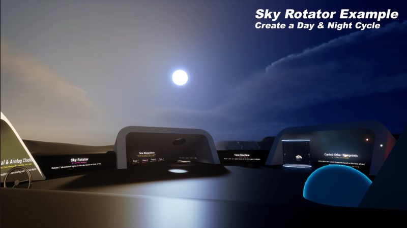 - 天空旋转器,它会旋转天空中的两个方向光,创造真实的昼夜循环。