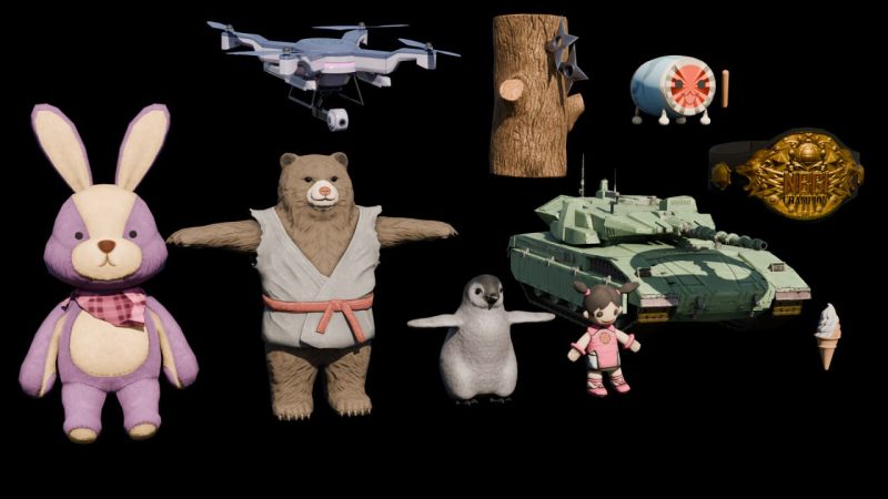 ℹ️ 《铁拳7》中的各类道具及配饰。模型由用户 AD-8 Renders (https://x.com/AD8_3D) 制作