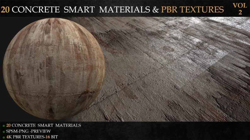ℹ️ 本产品包含20款高细节的混凝土PBR纹理。