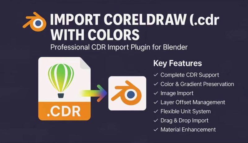 这款强大的插件可将.cdr 文件直接导入 Blender,同时保留颜色、渐变、图像和图层结构。