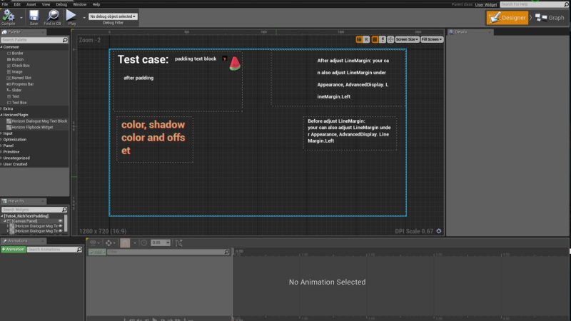 - HorizonDialogueMsgTextBlock:该小部件将富文本和打字机文本效果合而为一。你可以自定义每个文本块的文本颜色、阴影颜色、字体、字体大小和填充。你还可以为文本添加图片、动画、声音和超链接。你可以控制对话速度,以及结束后是否会重复。