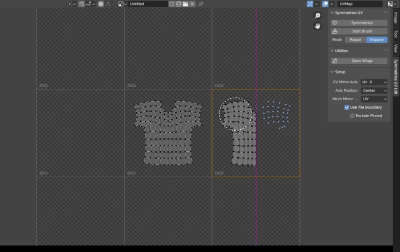 ℹ️ 如果您正在处理对称模型,那么保持 UV 映射和纹理的对称性是个不错的主意。此插件可以识别您的网格结构,并自动调整每个顶点的 UV 坐标。