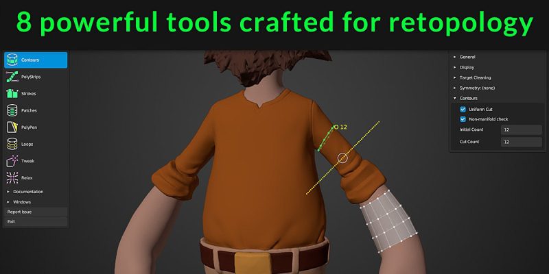 ℹ️ RetopoFlow 是 Blender 的一款全功能重拓扑工具,能帮助用户快速从高分辨率雕刻模型创建出自定义的低/中/高多边形网格。