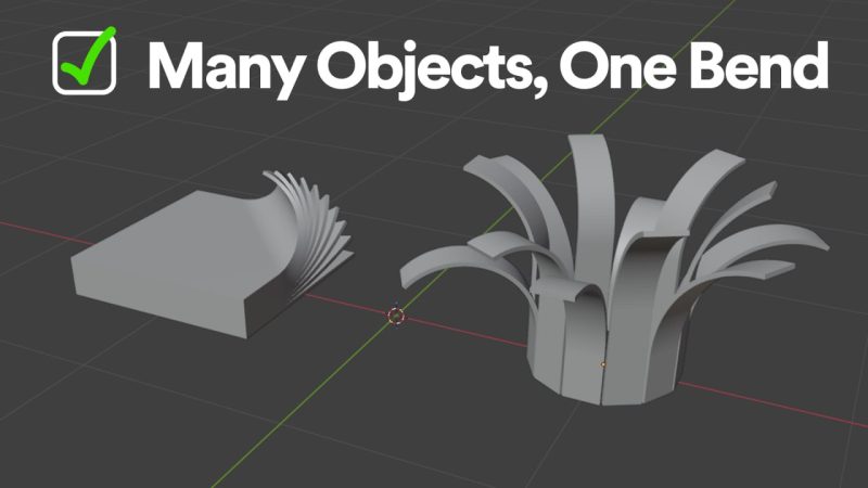 ℹ️ 此节点组为艺术家提供了一种便捷易用的方法,可利用Blender 5.0中引入的几何节点对物体进行弯曲操作。内置的操控器让您能在视图窗口中直观地控制弯曲的位置、方向和姿态。
