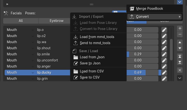 你还可以将它们导出到其他应用程序(目前支持 PMX Editor)。